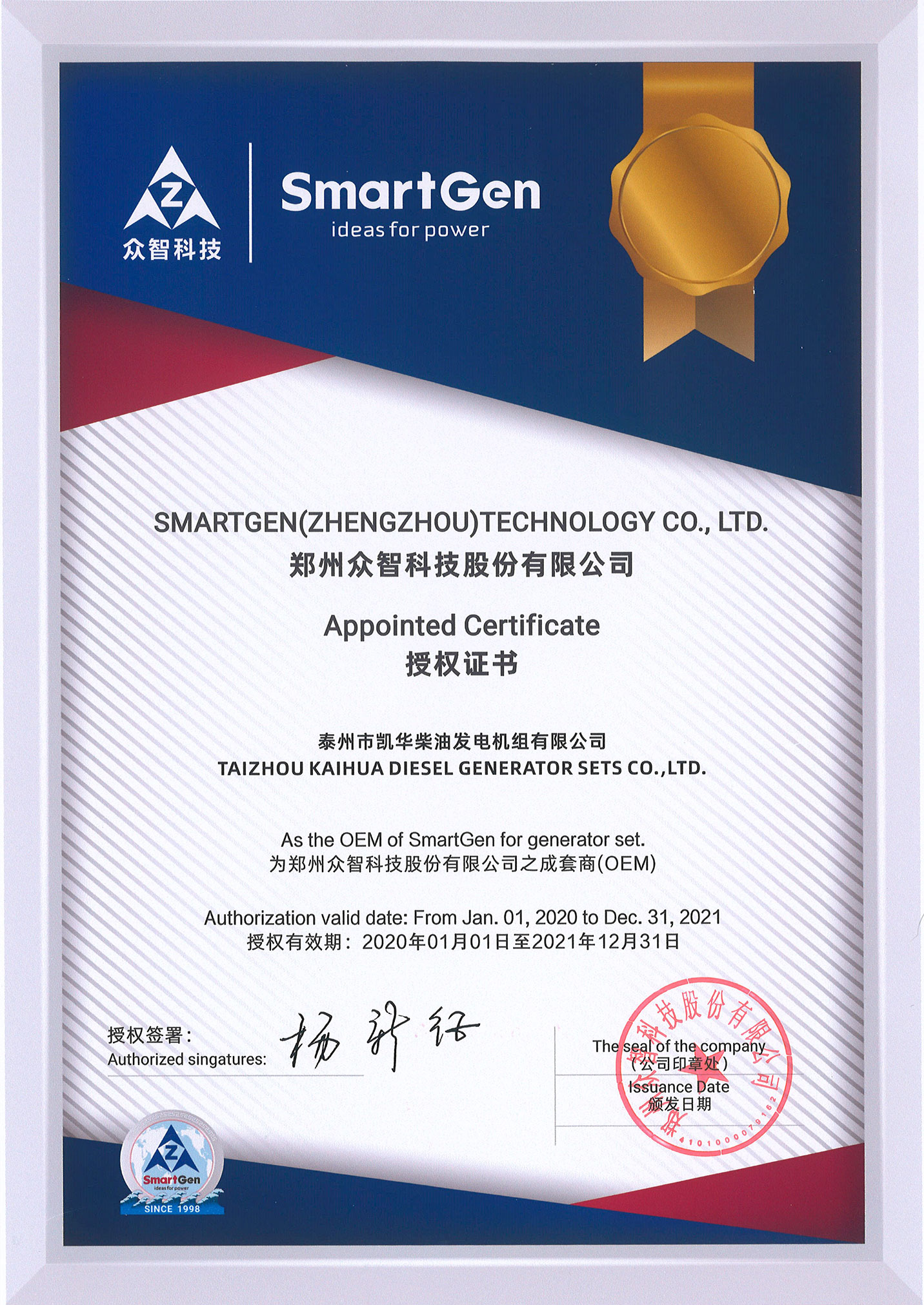 泰州市凱華柴油發電機組有限公司創建于2003年,是一家集柴油發電機組的研發、生產、銷售為一體的高新技術民營企業,公司目前注冊資本金11800萬元人民幣,生產基地占地六十畝,現有各類高素質員工一百多名,專業技術人員達46人,其中高級技術人員16人,年銷售額近6億元。公司主營產品:3~3000KW陸用柴油發電機組,15~600KW移動拖車電站,12~1000KW船用應急柴油發電機組,各種靜音型、中高壓、多機并聯、燃氣等特種機組以及進口系列柴油發電機組,可滿足不同客戶的不同電力需求,還可滿足用戶不同電壓、不同頻率的要求。